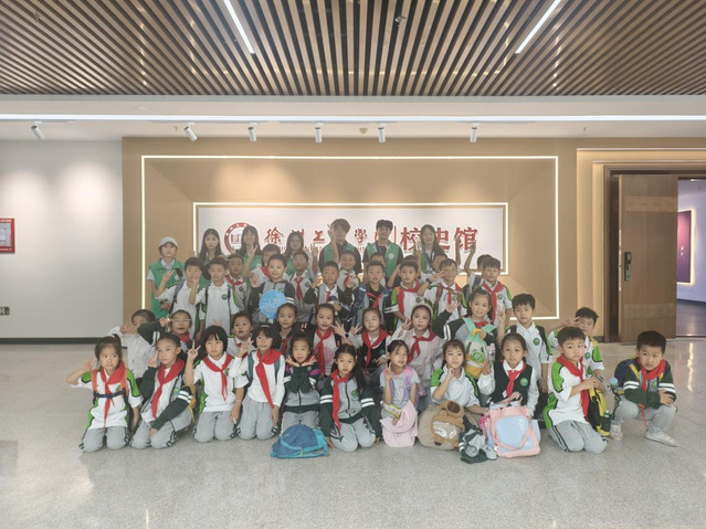 早上8时许,研学学子在我校南门集合,在校训景观石前,孩子们与我院6165cc金沙总站检测中心志愿者合影,眼中满是对大学生活的好奇与向往。校史馆内,志愿者通过老照片、实物讲述学校发展历程,帮助孩子们直观感知“大学”模样;淮海地区革命文化博物馆红中,讲解员结合“徐州会战”“抗日战争”等历史图文与战役地图、壁画,以生动故事传递先辈家国担当,“传承红色基因”的种子悄然播撒。活动中,学生们还在图书馆交流、校园广场休息活动,记录见闻、分享收获。
