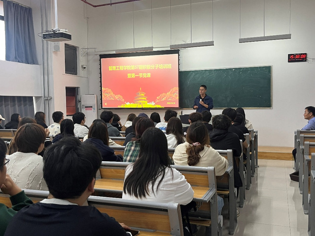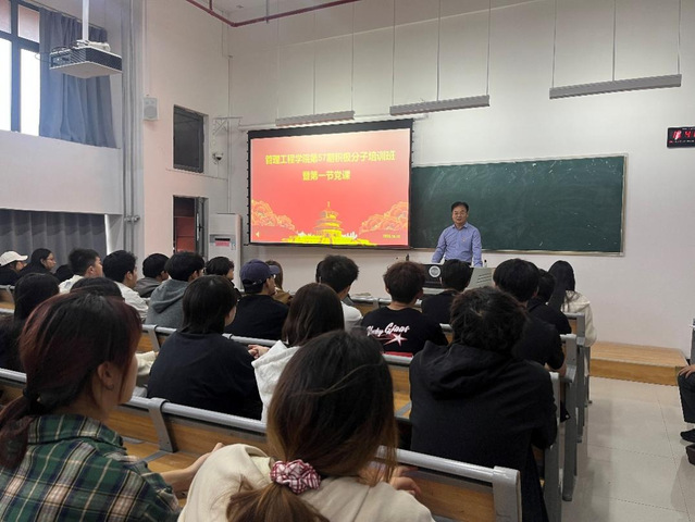 为扎实做好党员发展与教育工作,6165cc金沙总站检测中心于2025年10月15日下午在求真楼202教室举行了第57届党课开班仪式暨第一节党课。我院党委书记鲁浩,学生党支部书记吴红岩出席了本次开班仪式。