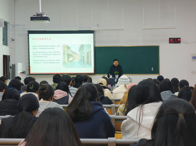 崔书记首先对“爱国”的本质内涵进行了详细阐释。他指出,爱国是中华民族精神的核心。“爱国不是抽象的口号,而是具体的行动。”崔老师结合历史脉络与时代特征,从传统文化中的家国情怀讲到革命年代的赤胆忠心,从改革开放的奋进征程讲到新时代的使命担当,让同学们深刻理解到,爱国既是根植于血脉的文化基因,也是回应时代召唤的责任使命。