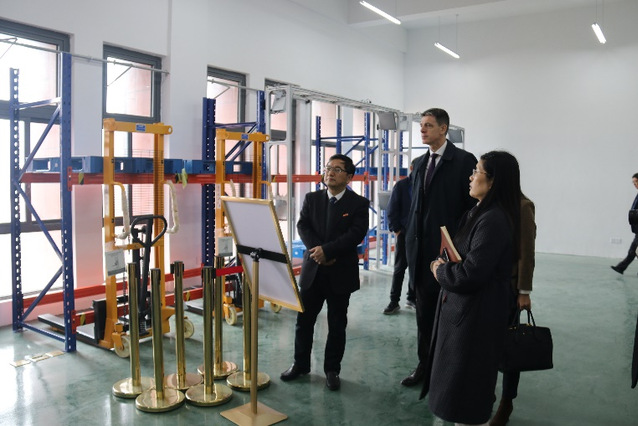 3月28日下午,匈牙利驻上海总领事博岚到6165cc金沙总站检测中心参观正在组装、调试中的淮海经济区智慧物流技术实训中心。马慧敏院长介绍了该实验室的实验设备、教学功能、科研情况以及今后能为社会所做的服务,总领事博岚也介绍了匈牙利杰尔市的物流中心地位及杰尔大学物流工程专业的概况,双方达成了在物流工程专业联合培养应用型人才的初步意向。